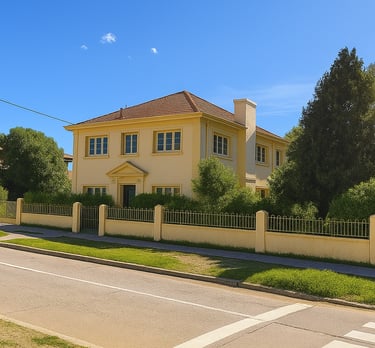 • Arquitectura clásica de dos pisos: Fachada simétrica, vista limpia, molduras originales y un estilo que destaca en el barrio. Fotográficamente muy atractiva.